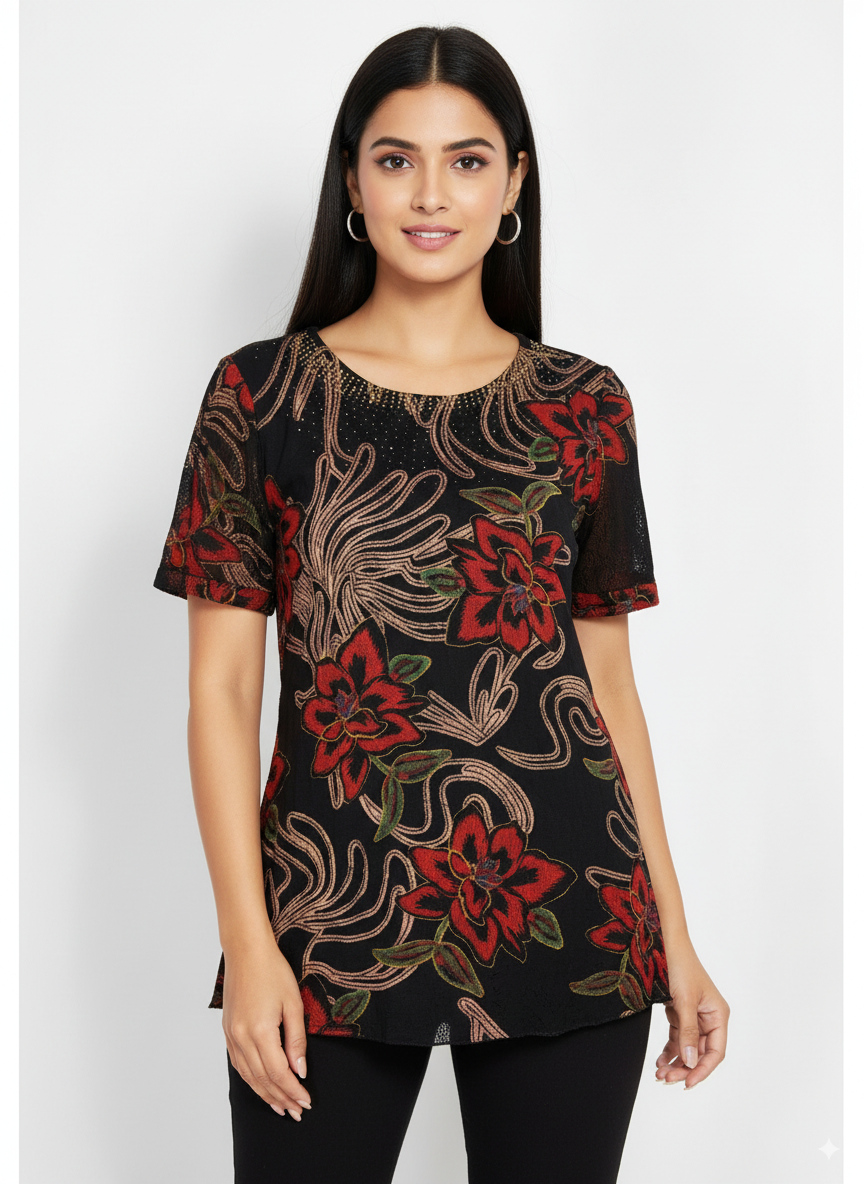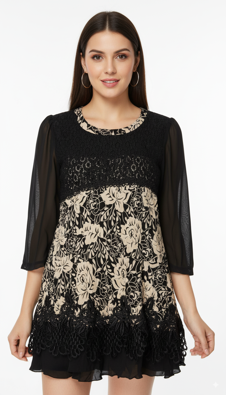 Bohemian Tunic with Sheer Sleeves and Tassels