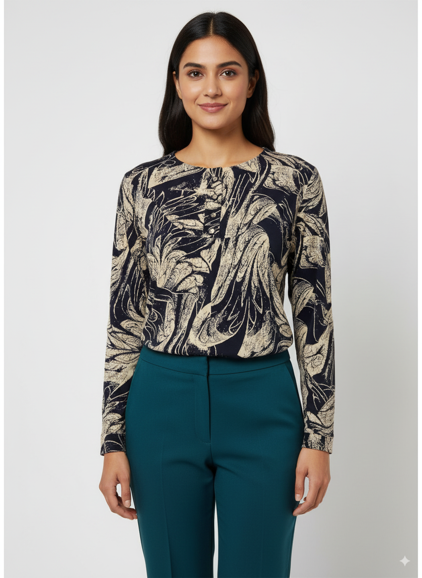 Patterned Button-Front Bohemian Top