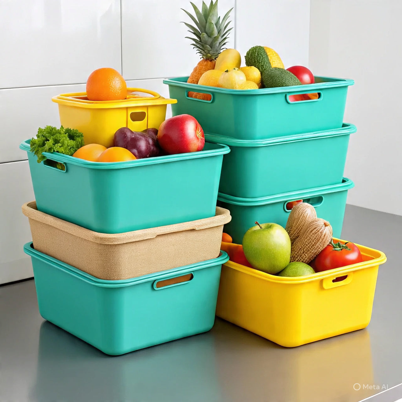 Organize your kitchen effortlessly with this set of six unbreakable baskets. Made from durable, BPA-free plastic, ideal for fruits, vegetables, and groceries. Lightweight, stackable, and easy to clean — perfect for modern, clutter-free storage.